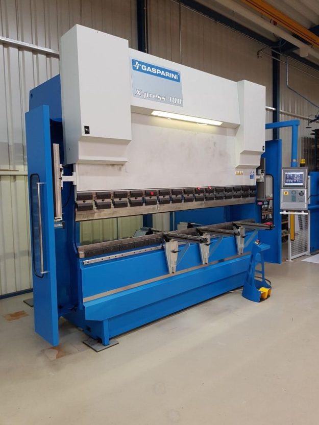 Hydraulische kantbank Gasparini 330 ton x 4000 mm, 7 assen CNC bestuurd. Dynamische zelfdenkende bombering in de onderbalk.